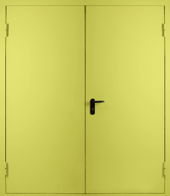 Входные огнестойкие металлоконструкции с двумя створками устанавливаются в местах с высокой людской проходимостью. Они обеспечивают в случае непредвиденной ситуации спокойную эвакуацию людей из здания. В обычных условиях одна из створок статична, фиксируется вверху и внизу шпингалетами.