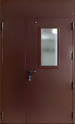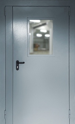 Полуторапольная противопожарная дверь со стеклом EI 60 с порошковым напылением (RAL 6027)