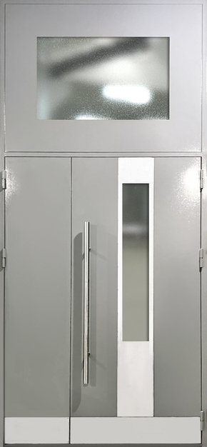 Полуторная техническая дверь со стеклом и фрамугой (серая)