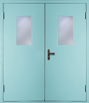 Двустворчатая техническая дверь со стеклом (RAL 2000)